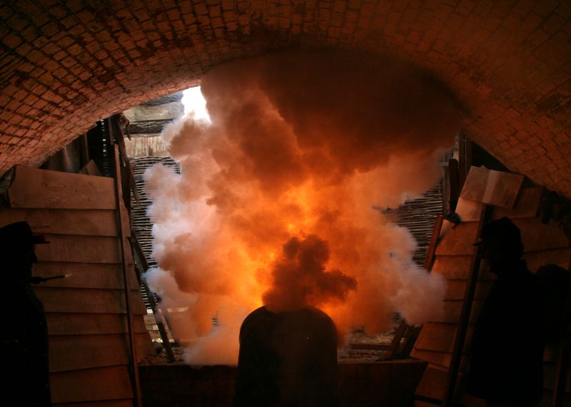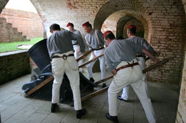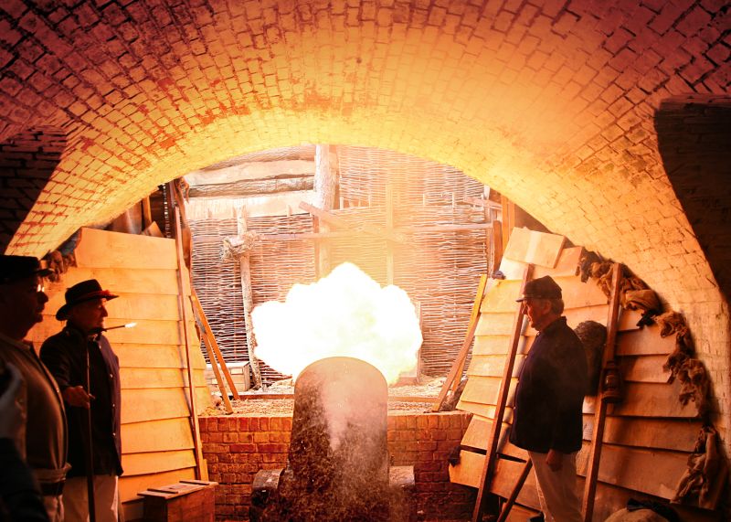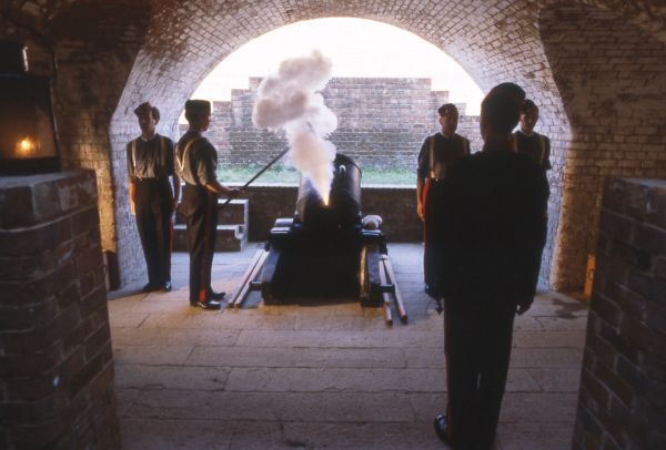The Portsdown Artillery Volunteers firing the 13-inch mortar in the West Mortar Battery at Fort Nelson: