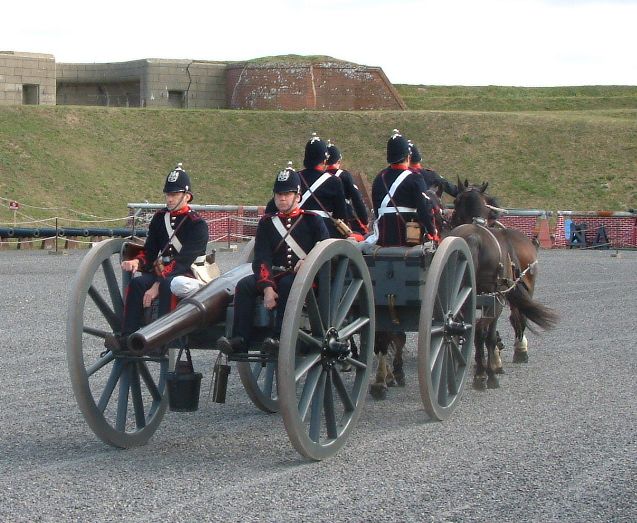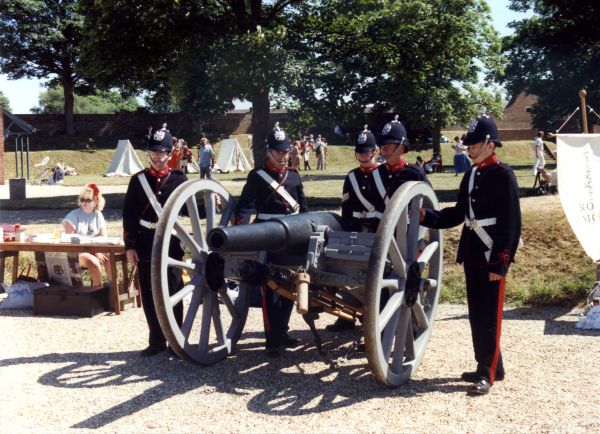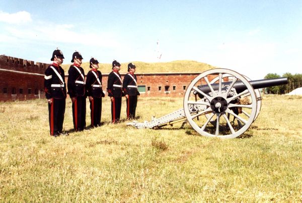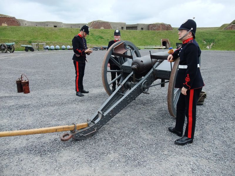 The Portsdown Artillery Volunteers prepare to fire a 16pr. Rifled Muzzle Loading field gun at Fort Nelson.