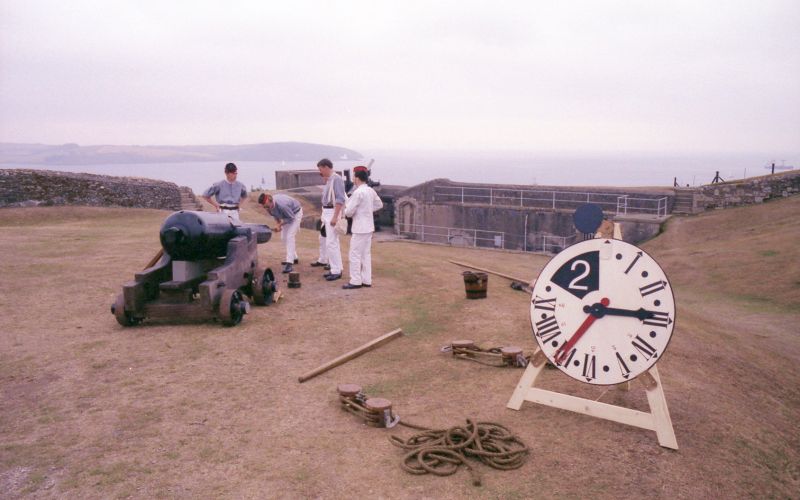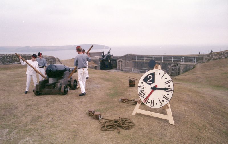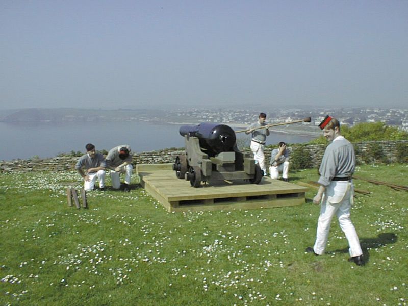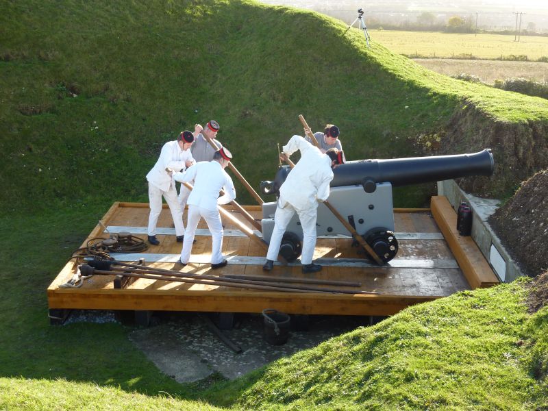 The Portsdown Artillery Volunteers performing a practice drill on a 64pr R.M.L. at Pendennis Castle |