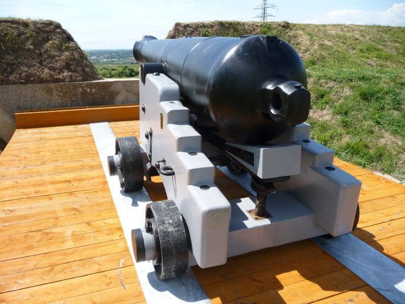 At fort Nelson the PFS has constructed a siege platform on the west rampart of the fort to supplement the range of weapons fired by the PAV during dispaly firings for the public. The barrel and cariage are originals provided by the Royal Armouries.