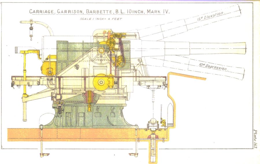 The 10inch B.L. Barbette Mounting Mark IV was similar to the 9.2inch B.L. Mk V.