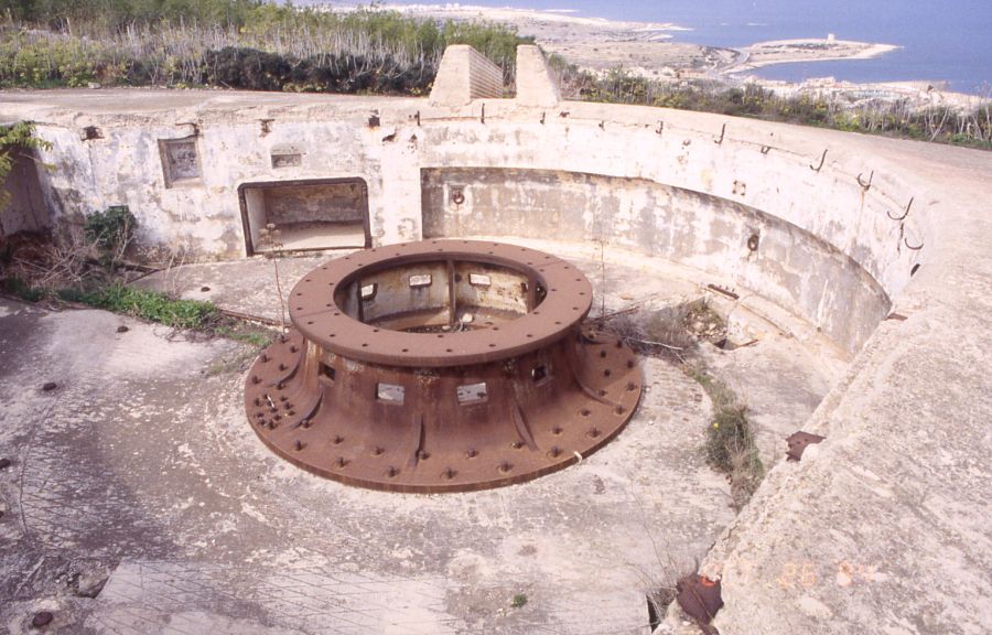 Of the 19 ex RN guns four were emplaced on special 45degree mountings first at Gibraltar then transferred to Plymouth in 1906.