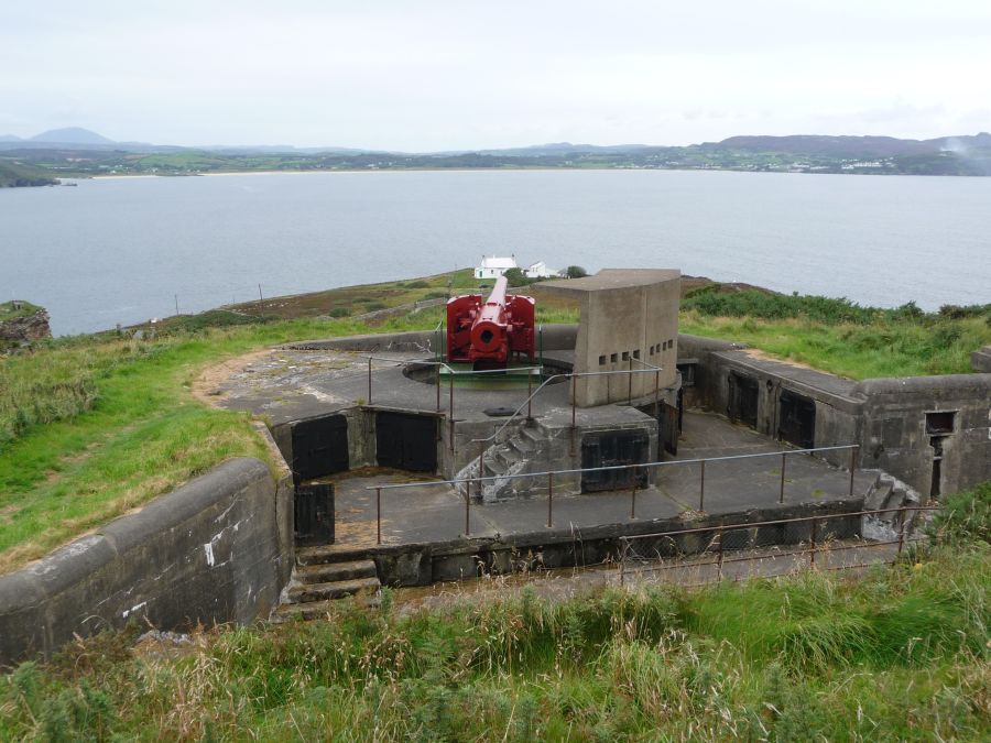 Lenan Head Fort was recomended in 1891 for the defence of Lough Swilly to be armed with 1 x 9.2inch BL gun, two 9 or 10inch RML guns and 2 x 6pdr QF guns. In 1901 it was armed with 2 x 9.2-inch BL Mk I and 1 x 9.2-in BL Mk IV gun. Between 1909 and 1911 the guns were changed to 2 x Mark X. They were removed for scrap in the 1950s.