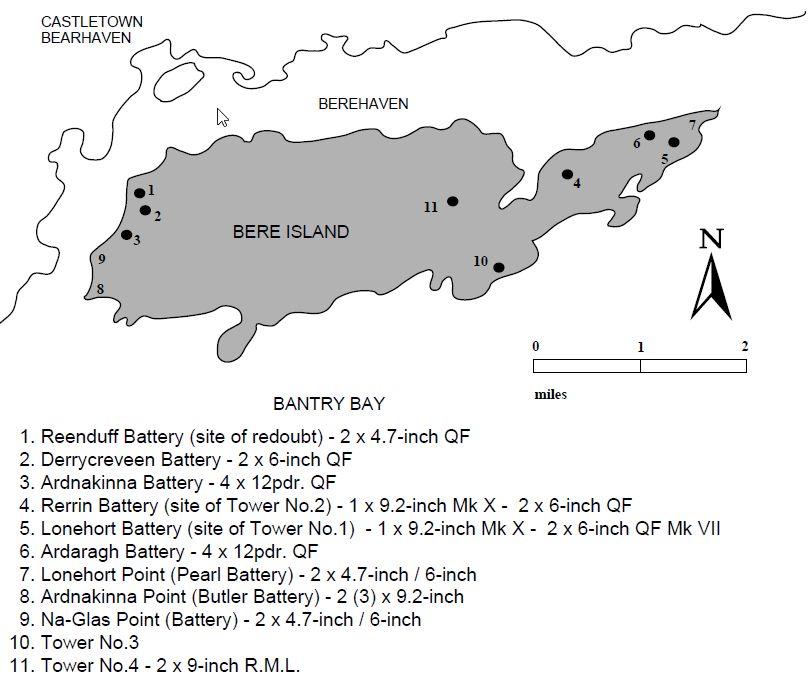Rerrin Battery was recommended at the eastern entrance to Berehaven in 1893 for 1x 9.2inch BL and 2 x 6inch BL guns.