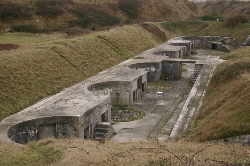 The High angle batteries were placed such that the crew could not directly see their target (except the ranging and observation officers who were in a range finding position) but it could not be hit by an enemy laying their guns with a flat trajectory. This proved popular with the gun crews. Unlike the H.P. disappearing guns the battery did not have to wait to come into action while boilers were brought up to steam. Construction of the H.A. Batteries began in 1893. This type of gun was the last of the R.M.L.s to remain in service; they were scrapped in 1922, a service life of thirty years.