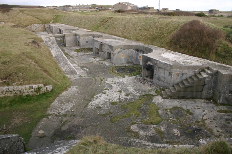 High angle batteries were not common. At Portsmouth the Mark I and II test mountings saw service, after trials, at Cumberland High Angle Battery, Eastney. Clearance work by English Heriatge in 2014 showed that the two emplacements are intact with the mounting plates still surviving underneath later building foundations. Another high angle battery was built at Steynewood on the Isle of Wight between 1889 and 1893 from where it could command the eastern approaches to Portsmouth Harbour. On the Thames a battery of four guns was mounted at Cliffe Fort. At Portland a High Angle battery was built adjacent to The verne Citadel from where the approaches to Weymouth and Portland Harbour could be protected. At Gibraltar a high angle battery of six 10-inch R.M.L. H.A. Mk Ii guns on Mark IV carriages was built on the summit of the Rock, Spy Glass Battery. Malta had a high angle battery for six 10-inch R.M.L. H.A.guns at Gharghur. At Plymouth four high angle guns were placed at Tregantle Down Battery and four at Rame Church Battery. Nearby Hawkins Battery was fitted with four 9-inch H.A. guns in 1892. It was later converted for high angle 9.2-inch B.L. guns. Milford Haven and Cork received no H.A. guns. At Dover several were proposed but never fitted.