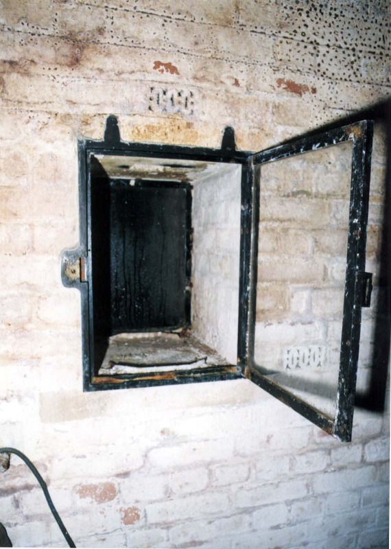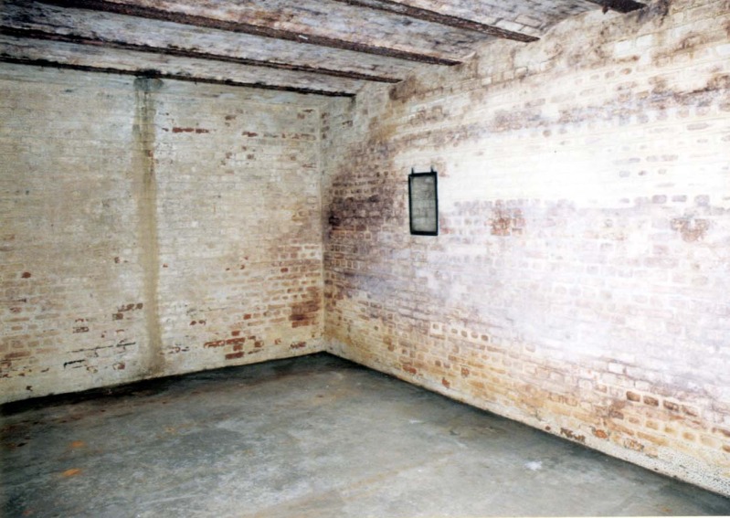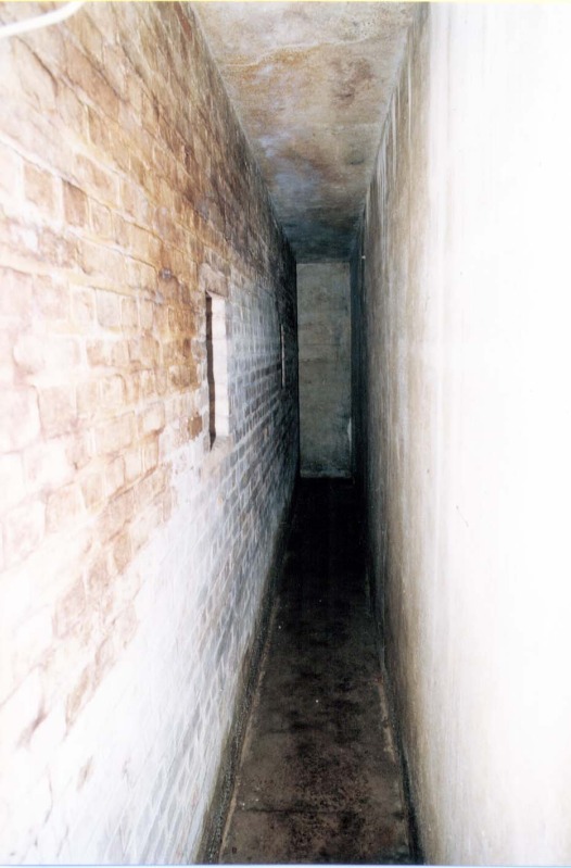 Past the lamp room the passage turns and descends to the magazine passage. At the top of the stairs down is the Small Arms Ammunition (SAA) fuze and tube store.