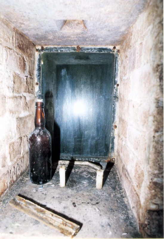 Inside it is a remarkable survival, a fuze and tube locker. It is sadly in very poor condition due to the damp atmosphere inside the centre. |