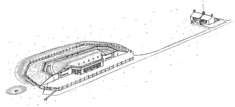 The loopholes in the gorge wall have inset steel plates to reinforce them. |