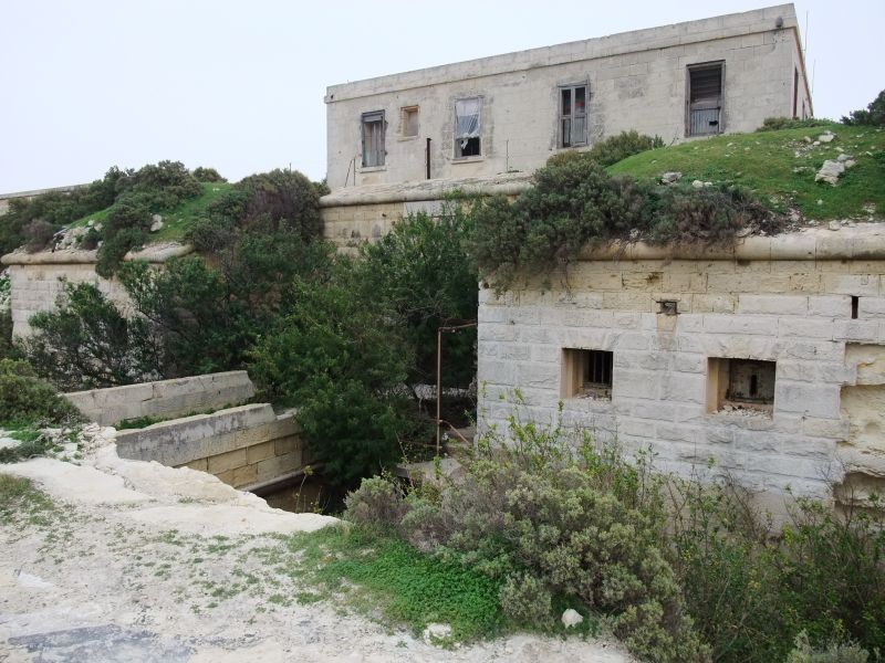 This fort was built as a redoubt to command the higher ground of the Delimara Headland. It overlooks Marsaaloxx Bay and was designed to command the northern approaches to Marsacala Bay. Its armament consisted of six 64pr RML guns on Moncrieff disappearing carriages.