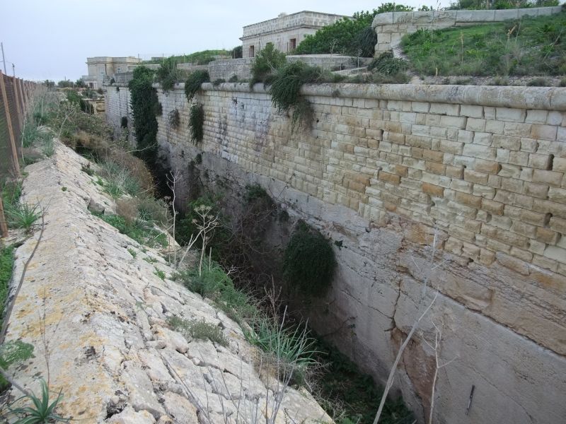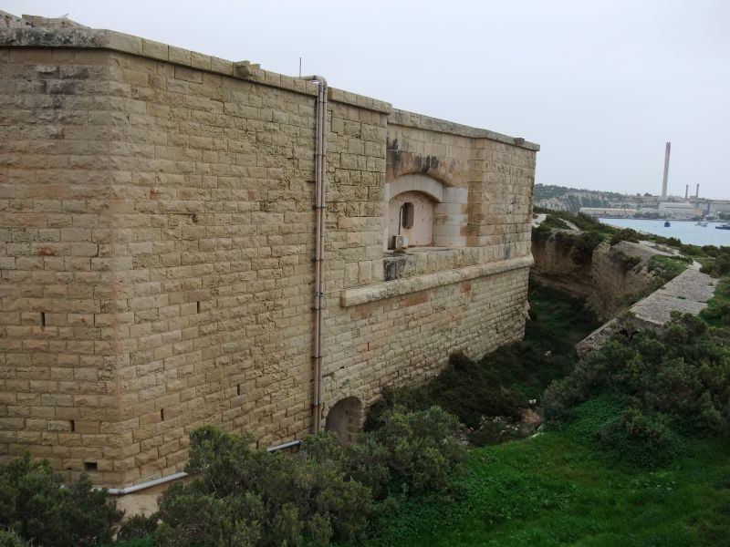 This fort was given the role of both coastal battery and land front fort. It sits behind the Victoria Lines, which it supports, and has guns that can fire out to sea to protect St. Paul's and Mellieha Bays.
