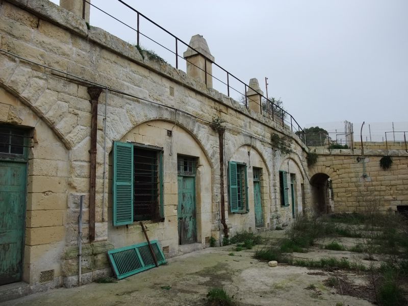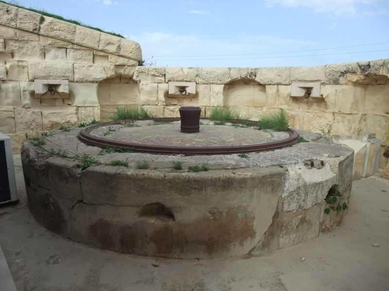 Built on the seward flank of the Victoria Lines this fort was intended to defend the Grand Harbour from long range bombardment. Its armament was three 11-inch R.M.L. guns and one 64pr R.M.L. gun on a Moncrieff Mounting.