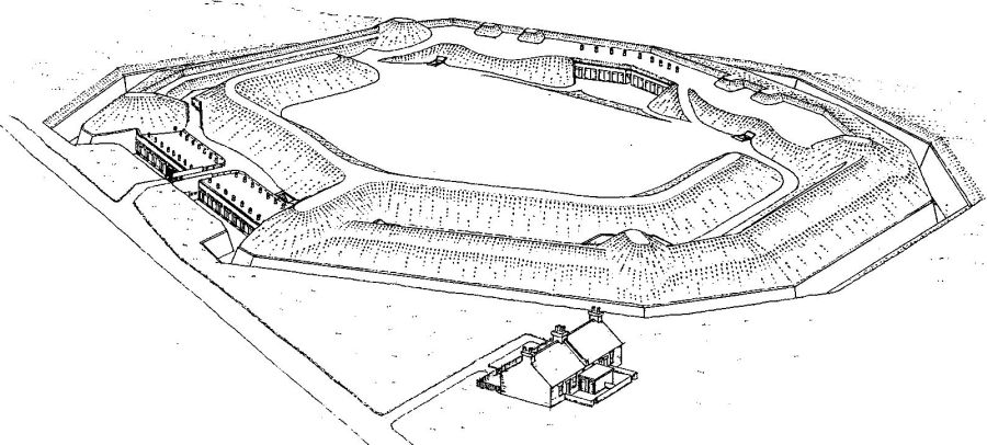 In the centre of the casemate block is the caponier. |
