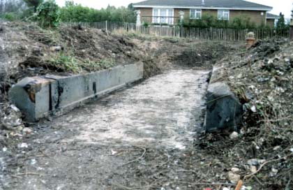 A ramp was cut down into the ditch through the concrete counterscarp. The concrete each side of the brickwork are the original ditch walls and the brickwork the later alteration. |