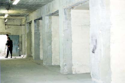At the rear of the site the ditch scarp contained a row of casemates and a capomier, the roof of which formed the access to the work. Part of the conversion roofed over the ditch along this section roughly doubling the storage space available and causing initial confusion when we visited.