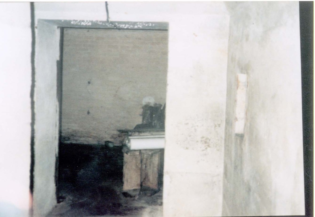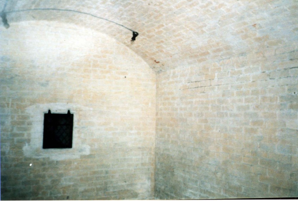 There were two pairs of loopholes each side with doors between them. The doors were to allow stores to be moved along the bottom of the ditch to the required casemates, easier than trying to get them along the narrow passage at the back. Note the steel plates set into the loophole openings. |