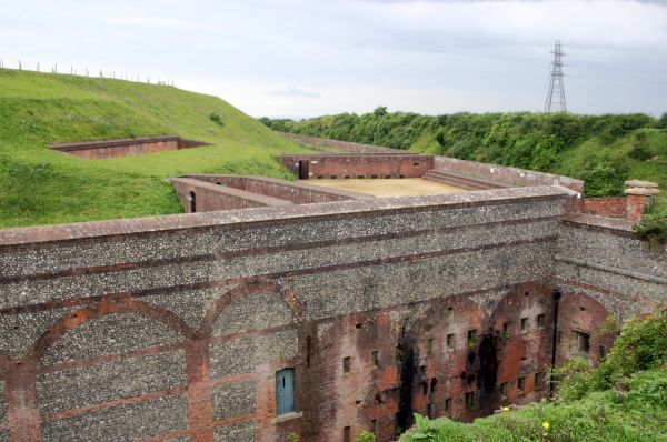 Whilst the fort was under attack, the local defence provided by the caponiers would have been supplemented by soldiers manning the firing steps that run round around the top of the inner ditch wall. Because of the way that the outer approaches to the fort were constructed, soldiers standing on these firing steps would always have the enemy silhouetted against the skyline, whilst they would have been unseen until the attacking forces arrived on the very edge of the counterscarp. The firing steps would have been manned by infantry regiments mobilised in time of need for this very purpose.
