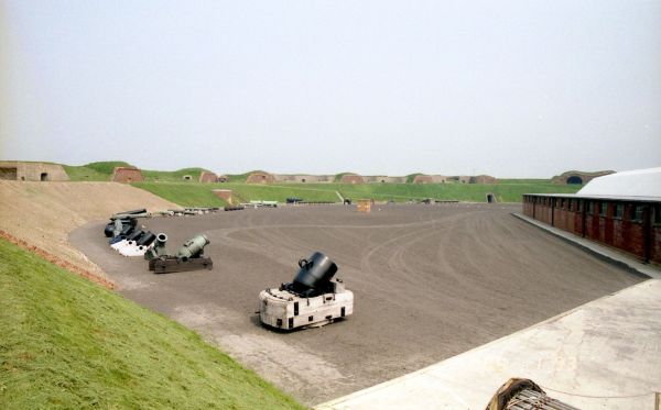 This open area was used for troop training. Here the soldiers would muster and parade.This was a very dangerous place to be when the fort was under bombardment and a safer method of communication between the soldiers' barack rooms and their action stations on the main ramparts was provided by three separate tunnels beneath the parade. Each tunnel also lead to a caponier for flank defence of a branch of the main ditch. A spiral stair from each tunnel gave access to the mortar batteries and on to the firing steps and base of the ramparts.